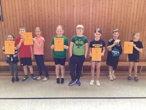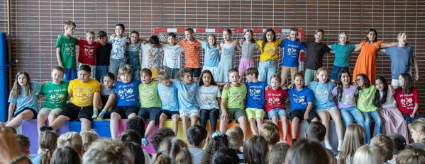 Am letzten Schultag fand in der Turnhalle die Verabschiedung der vierten Klassen statt. Zu diesem besonderen Anlass waren die Eltern und Angehörigen der Schulabgängerinnen und –abgänger zahlreich erschienen.