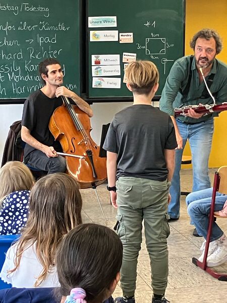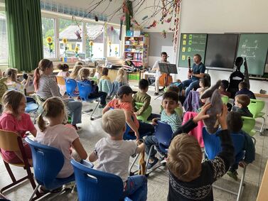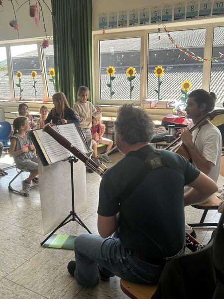 Am letzten Dienstag hatten die Schülerinnen und Schüler der Marksburgschule die Möglichkeit, die Rheinische Philharmonie live zu erleben. Es war bereits der zweite Besuch und auch diesmal wurde das Konzert von Nikolaus Maler mit dem Fagott und Yoel Cantori mit dem Cello gespielt. Zuerst waren die Klassen 3 und 4 an der Reihe. Es begann mit einer Vorstellung des Orchesters und der Instrumentengruppen. Die Kinder konnten die verschiedenen Instrumente kennenlernen und deren Klänge erleben. Anschließend spielten die Musiker mehrere Musikstücke, die speziell für die jungen Zuhörerinnen und Zuhörer ausgewählt wurden. Die Kinder waren begeistert und zeigten große Aufmerksamkeit. Im Anschluss daran fand das Kuscheltierkonzert für die Klassen 1 und 2 statt. Die Kinder durften ihre Lieblingskuscheltiere mitbringen, was die Vorfreude noch größer machte. Das Konzert bot eine abwechslungsreiche Mischung aus schnellen und langsamen Stücken, bei denen die Kinder und ihre Kuscheltiere aktiv mitmachen konnten. Die Kinder waren begeistert und hatten sichtlich Spaß daran, sich zu bewegen und die Musik zu erleben. Es war ein toller Nachmittag, der sowohl den Schülerinnen und Schülern als auch den Lehrkräften viel Freude bereitete. Die Kinder konnten die faszinierende Welt der Musik entdecken und wertvolle Erfahrungen sammeln. Wir freuen uns bereits auf den nächsten Besuch der Rheinischen Philharmonie, die dieses Konzert für Schulen kostenlos anbietet.