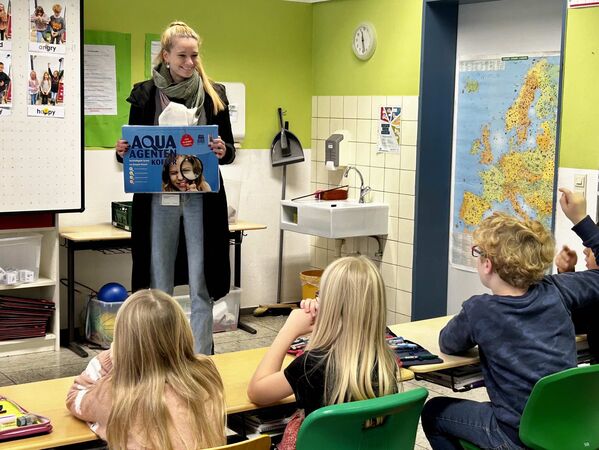 Am Freitag, den 07.11.2025, bekam die Klasse 2 der Marksburgschule Besuch von Igel Frieda. Frau Mendez von der Wildvogel Pflegestation Kirchwald (www.wpskirchwald.de) erzählte den gespannten SchülerInnen von ihrer Arbeit dort und brachte den Igel Frieda mit. Frieda wurde durch einen Rasenmäher verletzt und konnte durch die Hilfe der Pflegestation wieder geheilt werden. Frau Mendez erzählte den Kindern, dass Frieda nun wieder so gesund sei, dass sie gleich im Anschluss an den Besuch in der Schule von ihr in einen passenden Garten gebracht werden kann, der ihr viele Möglichkeiten für den nun nahenden Winterschlaf bietet. Die Kinder waren interessiert bei der Sache und konnten auch ihr Vorwissen über Igel in einem Igelquiz zeigen. Neben der Pflege von verletzten Igeln kümmert der Verein sich auch um verletzte Wildvögel. Die verletzten Tiere werden durch ehrenamtliche Tierärzte erst und bis zur Heilung auf der Pflegestation weiter versorgt. Um die wertvolle Arbeit des Vereins zu unterstützen, haben die Eltern der SchülerInnen im Vorfeld insgesamt 170 € gesammelt und das Geld und Katzenfutter (mit hohem Fleischanteil) gespendet. Die Spende wurde im Anschluss an den Besuch von den Klassensprechern übergeben.