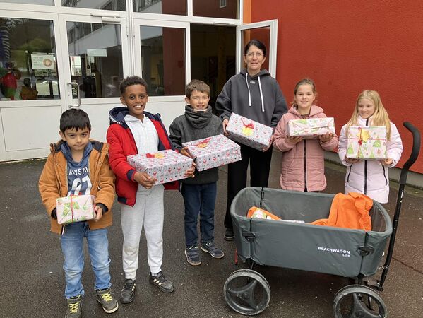 In der Vorweihnachtszeit wurden in der Bastel-AG unter der Leitung von Frau Bohn mit viel Liebe und voller Vorfreude ganz besondere Geschenke für die Familien der Kinder hergestellt. Aber auch die Geschenkverpackung selbst ist schon sehr besonders, denn von den Päckchen strahlen uns lächelnde, rotnasige Rentiere entgegen! Was sich in den hübschen Päckchen befindet, wird natürlich noch nicht verraten...