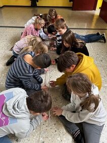 Danach durfte die Klasse sich, während der Bearbeitung von Stationen, frei im Institut bewegen und allen Mitarbeitern Fragen stellen und Rätsel lösen.