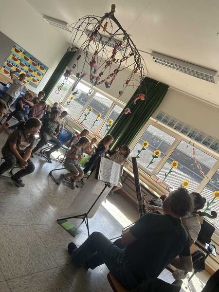Die Kinder aus dem vierten Schuljahr üben unter der Leitung von Frau Büchner bereits jetzt schon für einen Auftritt am dritten Adventsmontag.