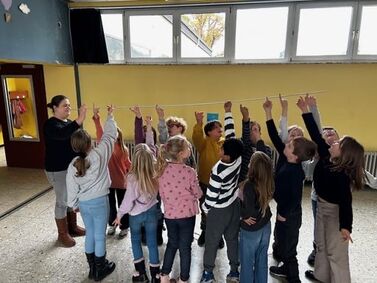 Die Kinder der Handarbeits-AG der Marksburgschule, die im Rahmen der Ganztagsschule als feste Gruppe organisiert ist, hatten mit viel Freude und Kreativität bunte Girlanden für Karneval genäht. Unter der Anleitung von Regina Reifferscheid haben die jungen Künstlerinnen und Künstler bunte Kreise ausgeschnitten und aneinander genäht, um fröhliche Dekorationen zu gestalten, die in der gesamten Schule für fröhliche Stimmung gesorgt hat.