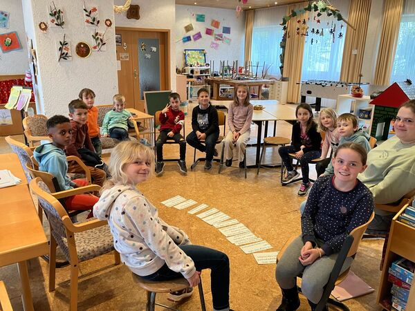 Die Kinder lasen gemeinsam aus einem Buch die wichtigsten Kinderrechte vor. Viele Kinder hatten bereits zur Freude der Schulsozialarbeiterin von den Kinderrechten gehört und konnten sogar einige benennen.