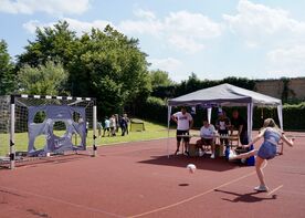 Ein besonderes sportliches Highlight erwartete alle Schülerinnen und Schüler der Marksburgschule am vergangenen Donnerstag. Unter der Leitung von Rafael Heilscher vom Volleyball-Club Lahnstein fand ein „Volleyball-Schnuppertag“ statt. Möglich wurde dies durch das Projekt „Sportfinder“ vom Landessportbund Rheinland-Pfalz, welches unter dem Slogan „Sport machen, Verein finden... mit der Ganztagsschule!“ Kindern Sportarten vorstellen und sie zum Sporttreiben motivieren möchte.