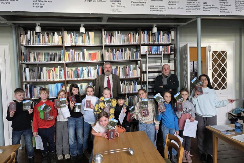 Nach einem Picknick in der Klasse und dem Abholen eines Mitschülers, machte sich die Klasse auf den Weg in die Braubacher Altstadt zur Philippsburg. Dort wurden die 12 Schülerinnen und Schüler und ihre Lehrerin Frau Lindner durch den Institutsleiter Herr Dr. Frey, dem wissenschaftlichen Mitarbeiter Herr Dr. Friedhoff und Frau Schubert, der Assistentin, im Lesesaal des Instituts herzlich begrüßt. Danach erfuhren die Kinder, was man dort alles anschauen und erkunden kann.