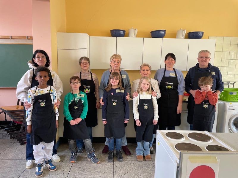 Am Mittwoch, den 25. Februar 2026, fand bereits die zehnte Küchenpartie in der Marksburgschule statt, bei der Seniorinnen mit Kindern gemeinsam mit Frau Bohn, pädagogische Fachkraft der Schule, und unter Anleitung der Gemeindeschwester plus Frau Weiland kochten. Die Veranstaltung förderte den Austausch zwischen den Generationen und machte das Kochen zu einem besonderen Erlebnis.